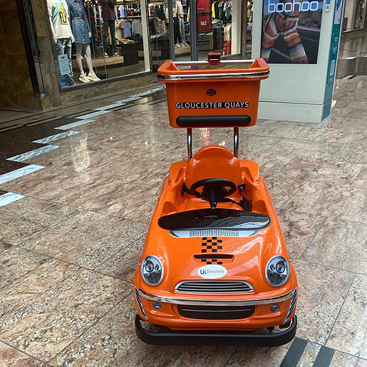 UK Strollers Mini Shoppers are all hand made in the UK. They are constructed around a strong steel chassis. The attractive and stylish body is cast in fibreglass, not plastic.